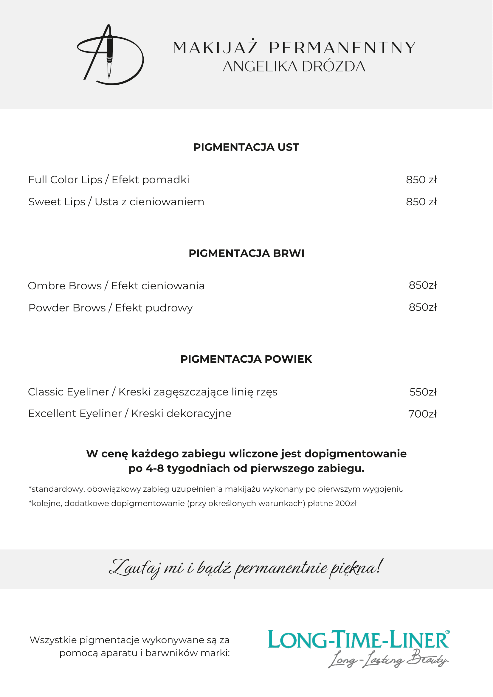 Cennik Masz pytania? Chętnie na wszystkie odpowiem!Zadzwoń lub napisz!517-221-038 lub Messenger Makijaż permanentny Łochów